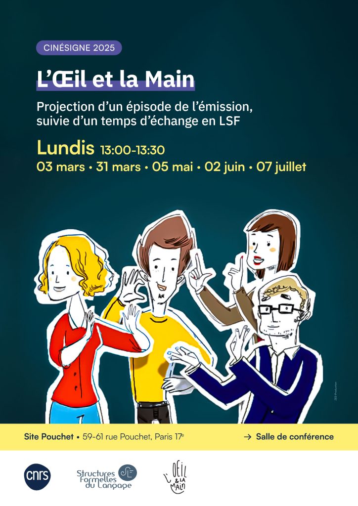 L’Œil et la MainProjection d’un épisode de l’émission, suivie d’un temps d’échange en LSFLundis 13:00-13:30 en salle de conférence